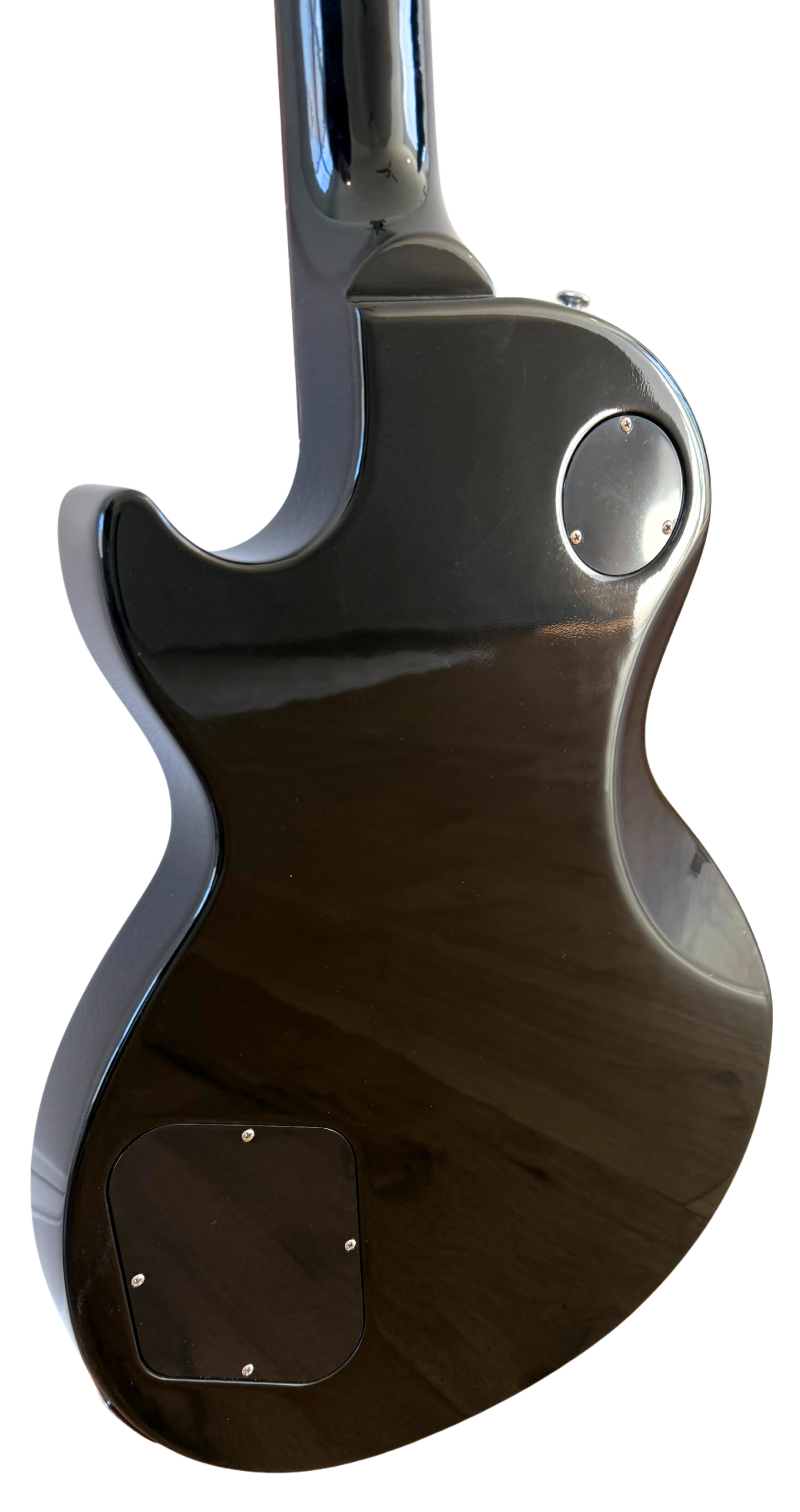 It’s very lightweight for a Les Paul due to not having a maple cap and also because of the carve out on the slab body. The absence of binding also helps relieve some weight. These are such great playing guitars and are a real value for the average price of a used one. The fretwork, nut, fingerboard, U.S.A. hardware and pickups are fantastic. From classic rock, metal and blues to jazz, the pickups deliver a wide range of tones that can be dialed in with the highly responsive volume and tone controls. The neck has a modern feel that plays smoothly with medium frets and low action. The fingerboard has a surprisingly thick slab of rosewood and the block inlays are a cool throwback to Gibsons from the 70’s.